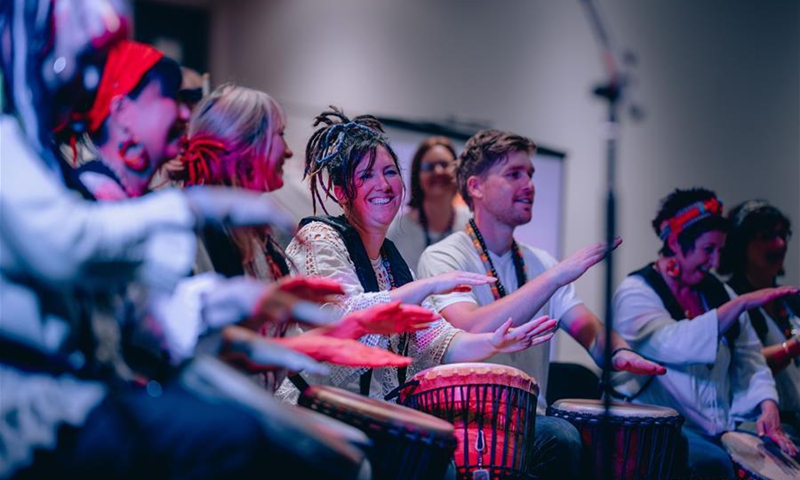 People perform African drums during the annual Africa Day cultural festival in Wellington, capital of New Zealand on Nov. 7, 2020. (Photo by Zhang Jianyong/Xinhua)