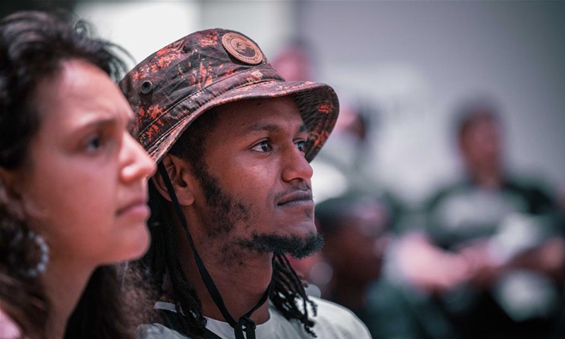 People react during the annual Africa Day cultural festival in Wellington, capital of New Zealand on Nov. 7, 2020. (Photo by Zhang Jianyong/Xinhua)