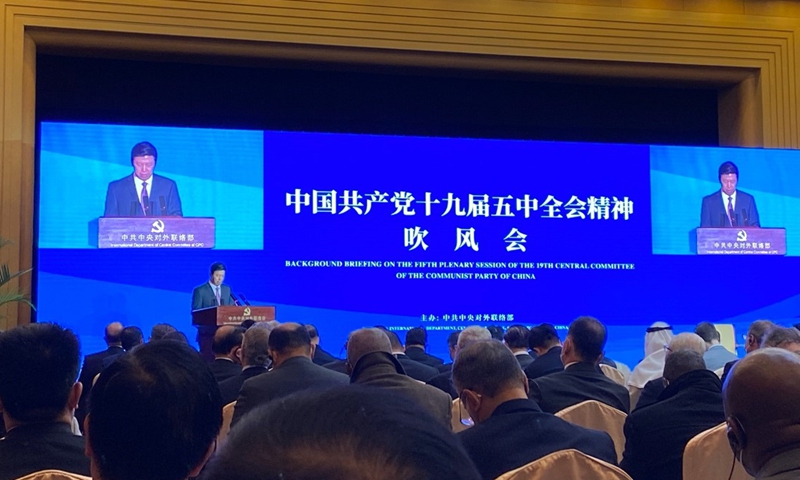 China on Monday held a background briefing on the Fifth Plenary Session of the 19th Central Committee of the Communist Party of China (CPC) for ambassadors and representatives to China, where officials introduced the country's 14th Five-Year Plan (2021-25), long-range goals through the year 2035, and how they will provide opportunities to countries around the world that have been battered by the COVID-19 pandemic.