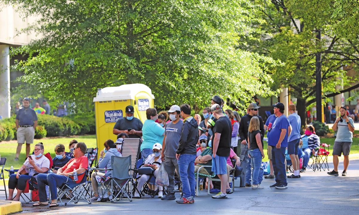 Hundreds of unemployed Kentucky residents wait in long lines outside the Kentucky Career Center for help with their unemployment claims in Frankfort, Kentucky, the US on June 19. Photo: AFP
