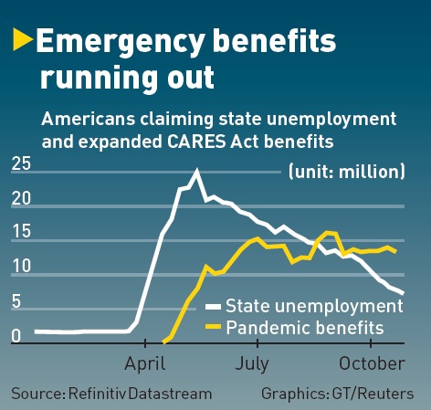 The looming expiration would spark the most substantial reduction to unemployment benefits since the end of July, when a $600 weekly supplement - also added as part of the CARES Act - expired. And with coronavirus infections surging, some economists caution that job losses could rise during the winter, increasing the need for support.
