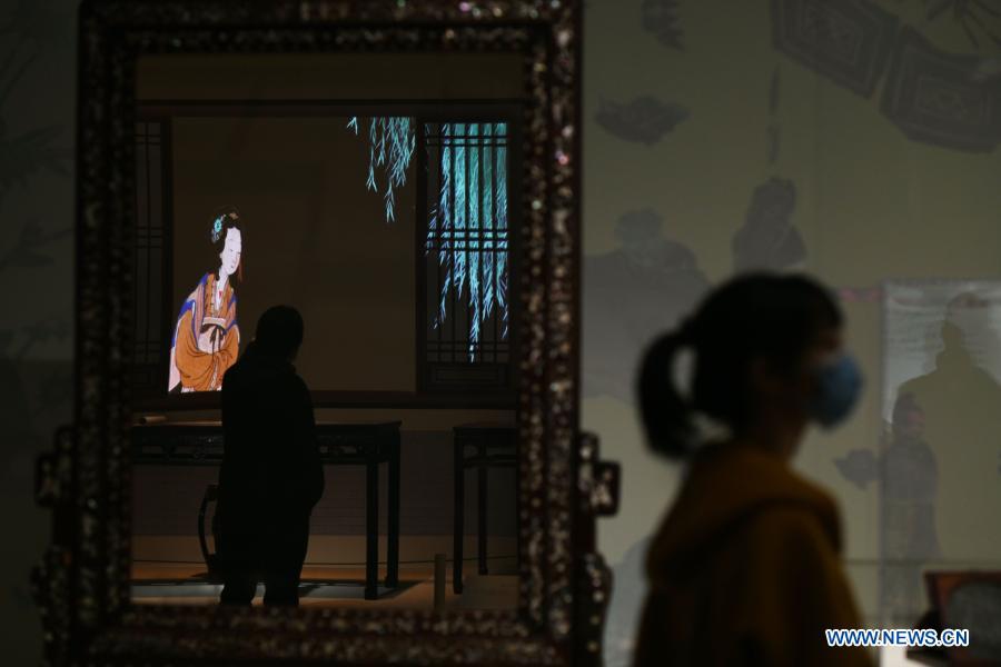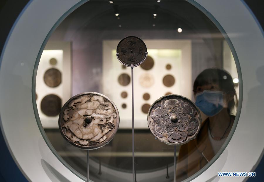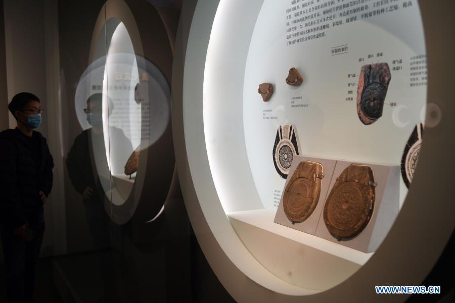 A visitor views exhibits during an exhibition on ancient Chinese bronze mirrors at the National Museum of China in Beijing, capital of China, Nov. 24, 2020. (Xinhua/Jin Liangkuai)