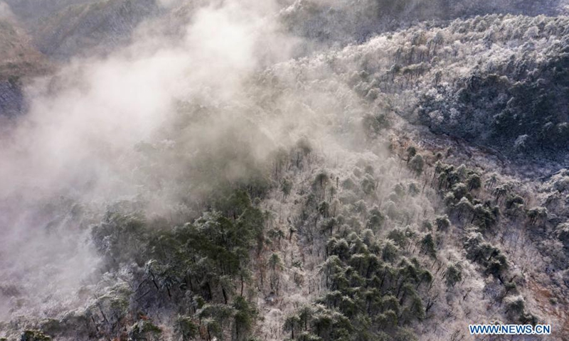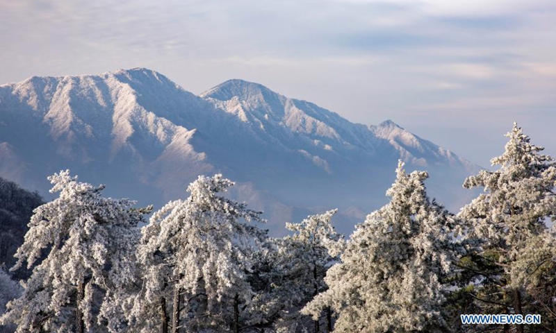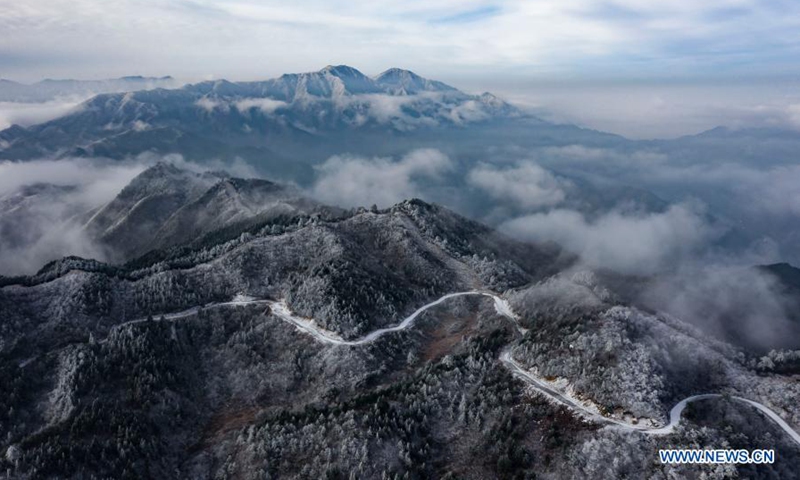Photo taken on Nov. 29, 2020 shows the snow scenery of Huoshan Mountain in Lu'an City, east China's Anhui Province. (Photo: Xinhua)