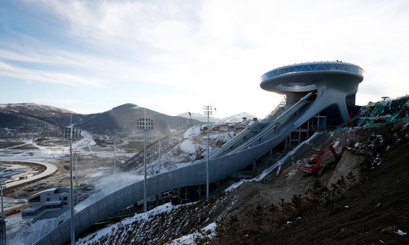 Photo taken on December. 8, 2020 shows the National Ski Jumping Center is under construction in Chongli District of Zhangjiakou City, Hebei Province.