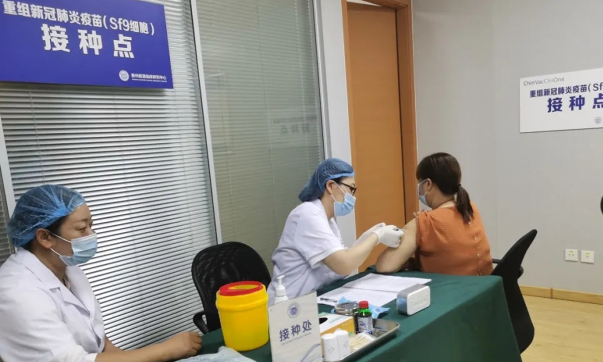 Volunteers receive China's first COVID-19 vaccine candidate from insect cells developed by the State Key Laboratory of Biological Therapy of Sichuan University-affiliated West China Hospital. Photo: Courtesy of the university