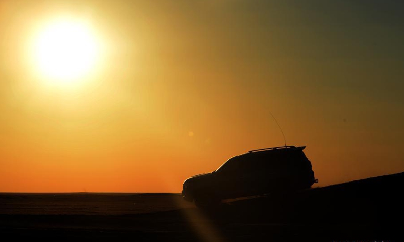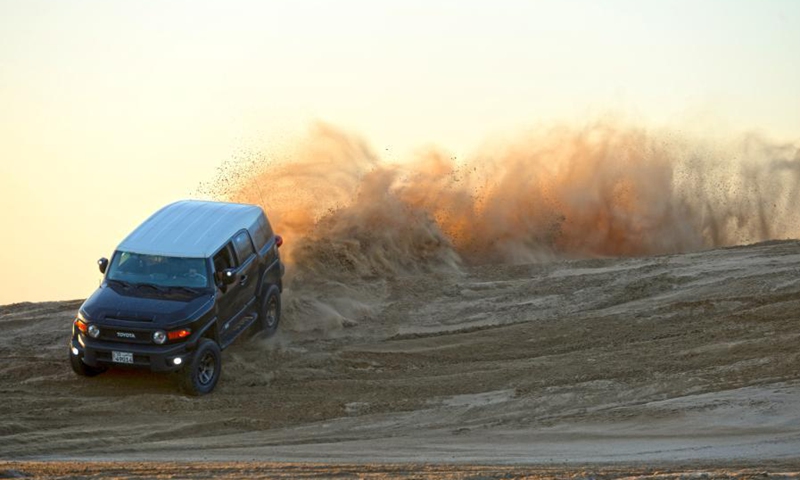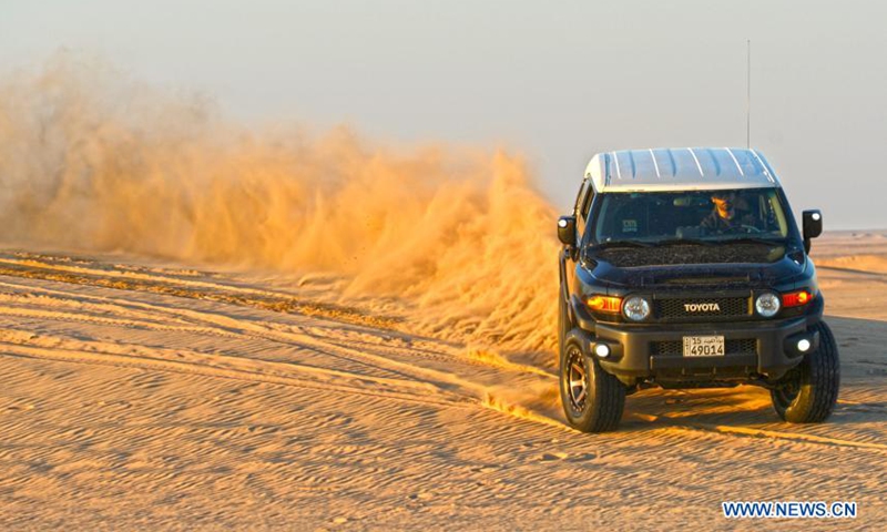 A man drifts his car in desert in Jahra Governorate, Kuwait, Dec. 11, 2020. (Photo by Asad/Xinhua)
