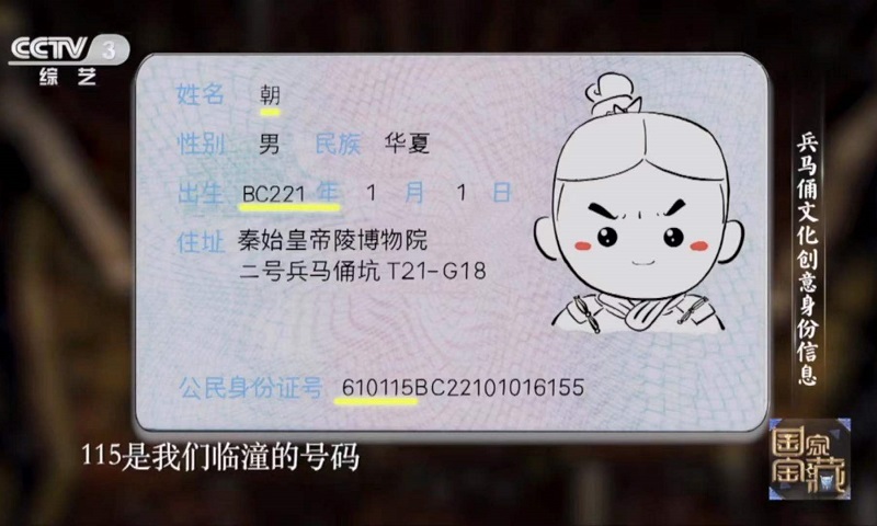 The first six digits in its ID number are 610115, the same as the residents in Lintong, and the last four digits, 6155, are its registration number. It now “lives” in the No.2 pit in the museum, as the ID card shows.