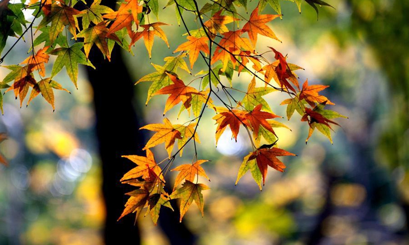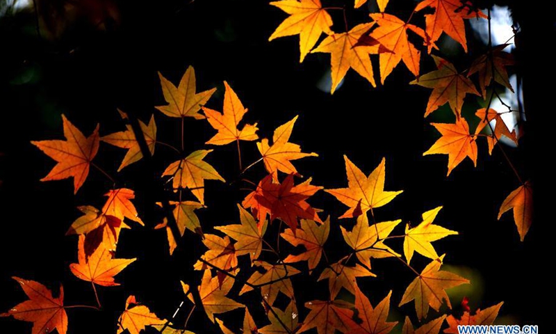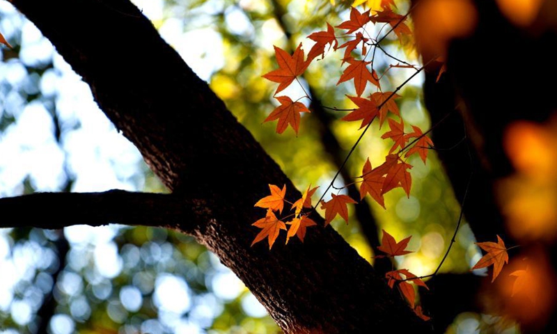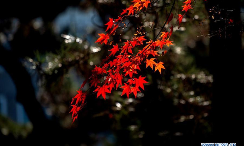 Photo taken on Dec. 15, 2020 shows maple leaves at a park in Minhang District, east China's Shanghai. (Xinhua/Zhang Jiansong)