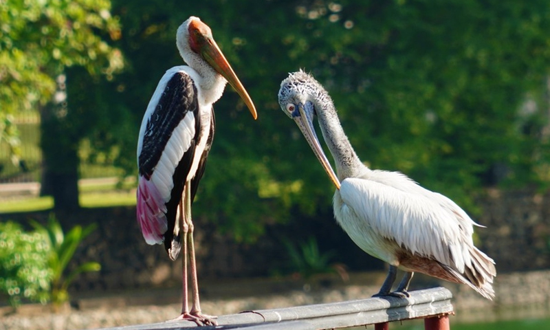 Birds are seen beside Colombo's Beira Lake, Sri Lanka, Dec. 19, 2020. (Xinhua/Tang Lu)