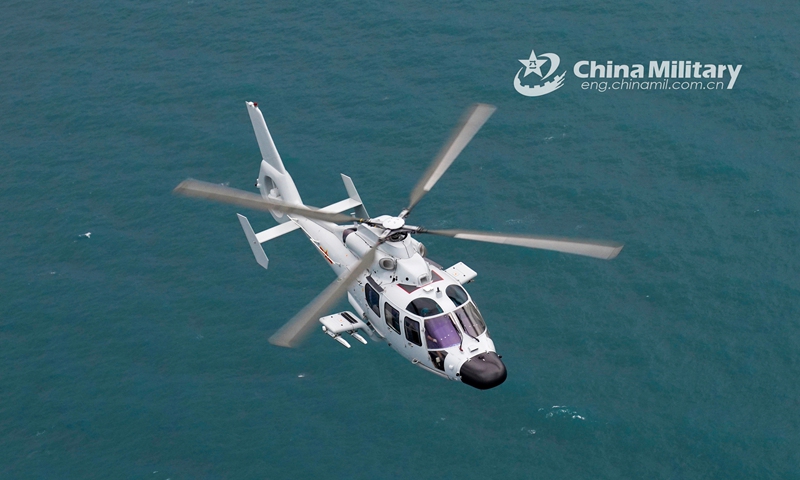 A ship-borne Z-9 helicopter attached to an aviation regiment with the navy under the PLA Southern Theater Command hovers at an extremely-low altitude during a live-fire training exercise on December 11, 2020. (eng.chinamil.com.cn/Photo by Gao Hongwei)