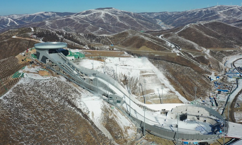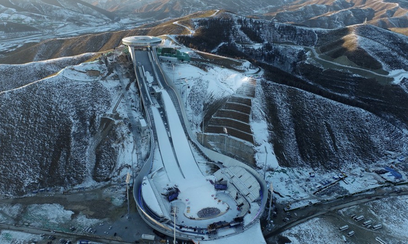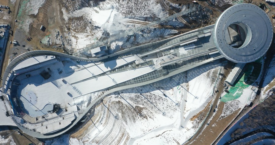 Aerial photo taken on Dec. 21, 2020 shows the National Ski Jumping Center in Chongli District of Zhangjiakou City, north China's Hebei Province. (Xinhua/Yang Shiyao)