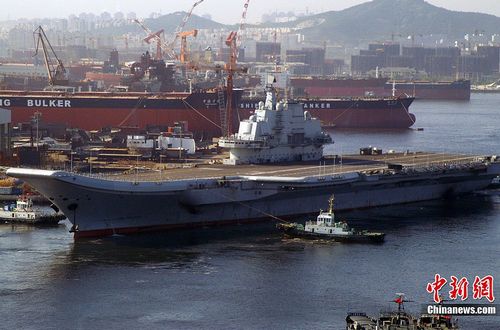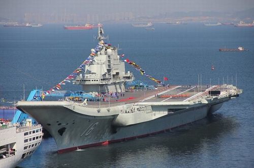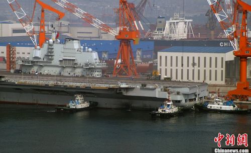 China's first aircraft carrier is refitted at the port of Dalian. The carrier, built on former Ukrainian vessel Varyag, is capable of carrying around 30 fixed wing fighters and helicopters and a crew of about 2,000. And the hull number, "16," has been painted on the ship recently. Photo: Chinanews.com