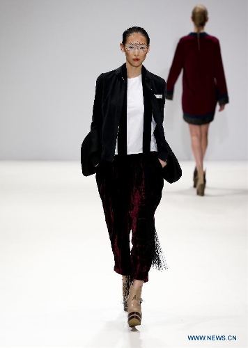 Chinese actress Wang Luodan presents a creation of Chinese designer Jenny Ji during London Fashion Week in London, Britain, on February 18, 2013. (Xinhua/Tang Shi)