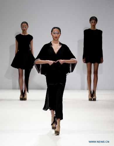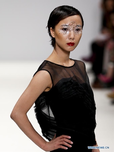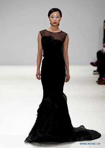 Models present creations of Chinese designer Jenny Ji during London Fashion Week in London, Britain, on February 18, 2013. (Xinhua/Tang Shi)