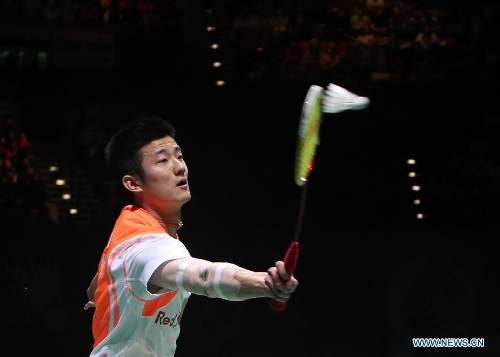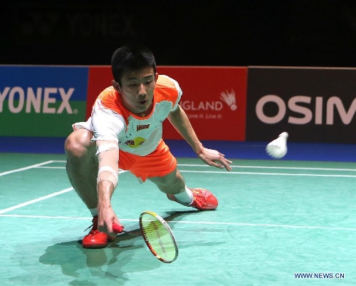 China's Chen Long returns the shot against Malaysia's Lee Chong Wei during the men's singles final match at the 2013 Yonex All England Open Badminton Championships, in Birmingham, Britain, March 10, 2013. Chen Long won 2-0 to claim the titel.(Xinhua/Yin Gang)