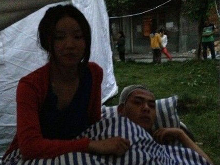 Lü Caiwen and his girlfriend Xiao Qin lived in a rented 2-storey house at the Tianquan county, Ya'an city. They were still sleeping when the 7.0-magnitude earthquake occurred Saturday morning. Lü was waken up by the wild shakes and immediately realized what was happening. As the ceiling was about to fall down, he quickly turned over his body to protect his girlfriend beside him. After the quake, the couple climbed out from the rubble, although Lü's head and body were wounded. Xiao said that she firmly believed Lü's love for her and was determined to spend her whole life with this man.