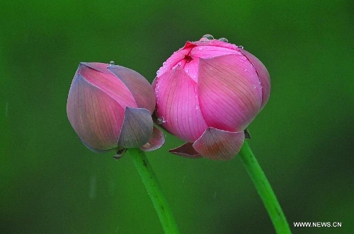 Lotus flowers are in bud at Yuanmingyuan, the Old Summer Palace, in Beijing, capital of China, July 10, 2013. Photo: Xinhua