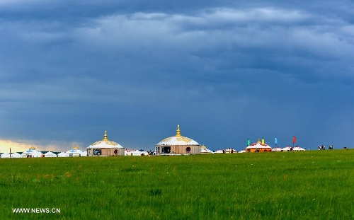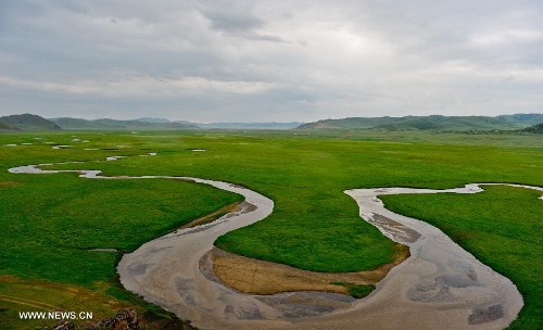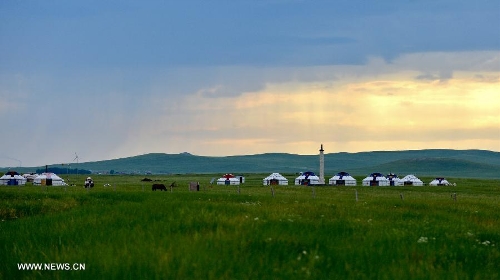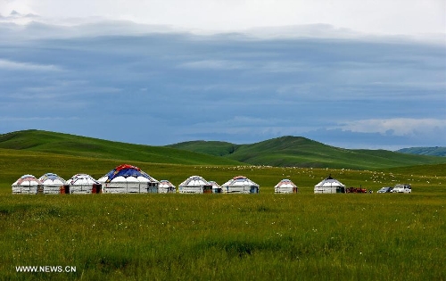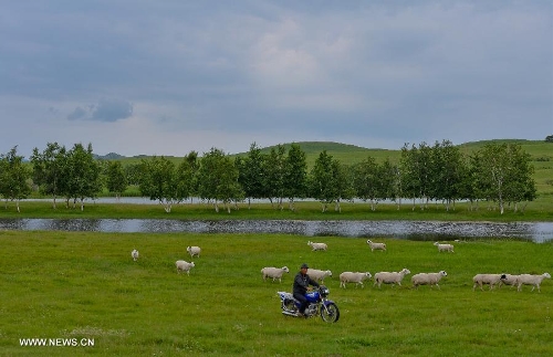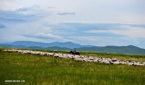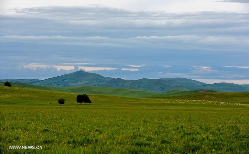 Photo taken on July 12, 2013 shows the view of local pasture in West Ujimqin Banner, north China's Inner Mongolia Autonomous Region. The pasture is part of the Xilingol, China's best preserved grassland which covers an area of 202,580 square kilometers. (Xinhua/Ren Junchuan)