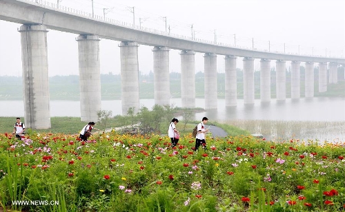 Students visit the Garden Expo Park in Beijing, capital of China, July 9, 2013. The 9th China (Beijing) International Garden Expo is held here from May 18 to Nov. 18, 2013. (Xinhua/Wang Xibao)