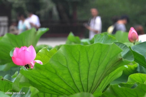 Lotus flowers blossom at the scenery spot of the Daming Lake in Jinan, capital of East China's Shandong Province, July 11, 2013. (Xinhua/Guo Xulei)