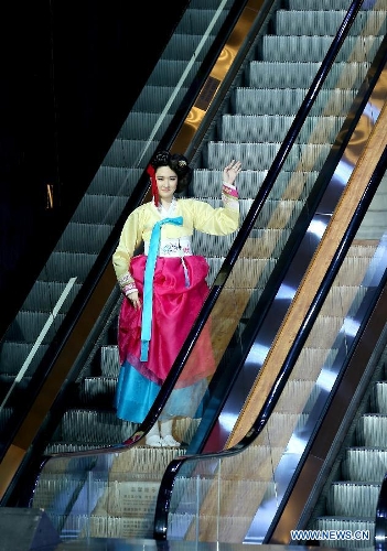 The third-prize winner from South Korea presents a creation during the 8th Asia Super Model Contest in Nanning, capital of south China's Guangxi Zhuang Autonomous Region, July 14, 2013. Contestants from China, Russia and South Korea won the top 3 of the contest. Photo: Xinhua