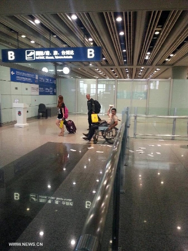 Photo taken on July 20, 2013 with a cellphone shows Ji Zhongxing (man on the wheelchair), suspect of an explosion at Terminal 3 of the Beijing Capital International Airport in Beijing, capital of China.