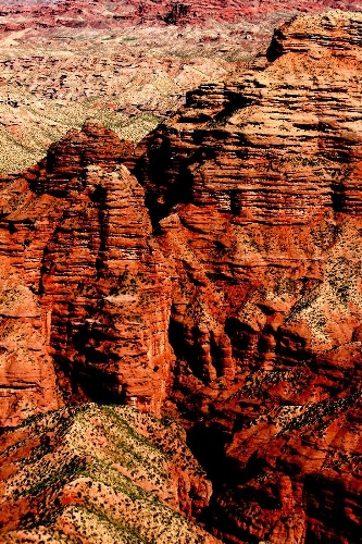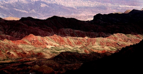 Tourists view the scenery of Danxia landform at Pingshan Lake scenic area in Zhangye, Northwest China's Gansu Province, July 20, 2013. Danxia, which means "rosy cloud", is a special landform formed from reddish sandstone that has been eroded over time into a series of mountains surrounded by curvaceous cliffs and many unusual rock formations. (Xinhua/Wang Jiang)