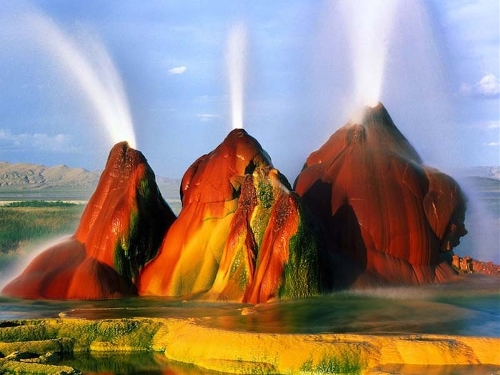 (Source: huanqiu.com) 图集详情: 【环球网综合报道】据维基百科介绍,飞喷泉(Fly Geyser)是美国内华达州西北一处小型间歇泉,位于瓦肖县格拉克以北32公里,目前属于私人领地。飞喷泉并非自然形成,是1964年一座地热试验井意外喷发而成,此后热泉水不断喷出,水中的碳酸钙常年累月沉淀在周围,形成小土丘。土丘上生活着嗜热藻类使得土丘呈现漂亮的红色和绿色。