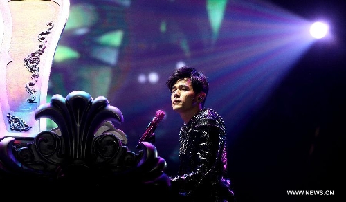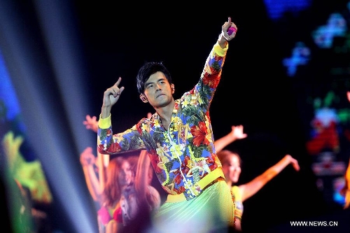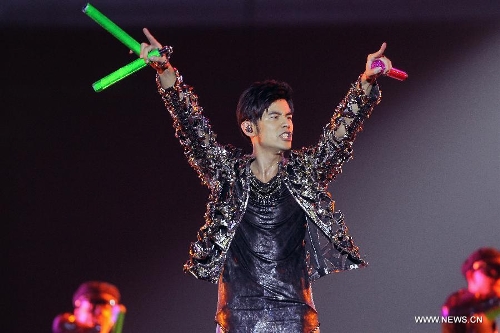 Singer Jay Chou performs at his "Opus Jay 2013 World Tour" Tianjin concert in Tianjin, north China, July 27, 2013. (Xinhua/Ma Cheng)