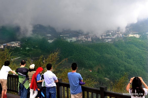 Tourists view scenery at Xiding in the Alishan scenic area in Chiayi, southeast China's Taiwan, July 29, 2013. Xiding is one of the best places to view mist and sunrise in the scenic area. (Xinhua/Tao Ming)