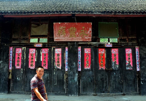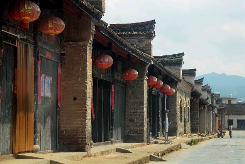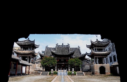 The gate of an ancestral temple is seen in the ancient town of Jingziguan in Xichuan County, central China's Henan Province, Aug. 4, 2013. As a former local trade center located on old trade routes, the town boasts more than 700 well-preserved ancient buildings dating back to the Ming Dynasty (1368-1644) and the Qing Dynasty (1644-1911). (Xinhua/Wang Song)