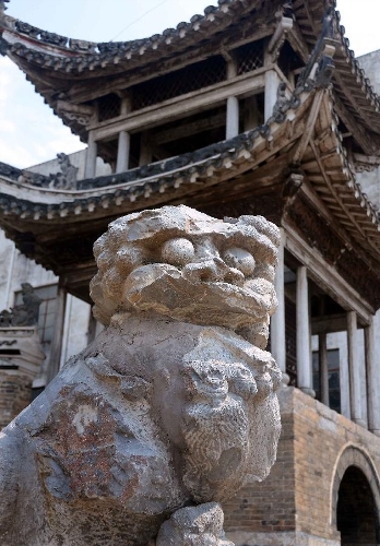 A dilapidated lion sculpture is seen in the ancient town of Jingziguan in Xichuan County, central China's Henan Province, Aug. 4, 2013. As a former local trade center located on old trade routes, the town boasts more than 700 well-preserved ancient buildings dating back to the Ming Dynasty (1368-1644) and the Qing Dynasty (1644-1911). (Xinhua/Wang Song)