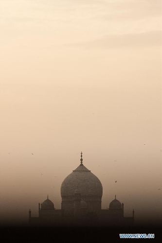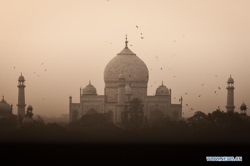 Photo taken on June 15, 2013 shows the Taj Mahal at dusk in Agra, Uttar Pradesh, India. The Taj Mahal was described by Rabindranath Tagore as "a teardrop on the cheek of time", by British writer Rudyard Kipling as "the embodiment of all things pure", and by its creator, Mughal Emperor Shah Jahan as "making the sun and the moon shed tears from their eyes". Every year, tourists come from across the world to Agra to catch a glimpse and listen to the stories of what is considered as the most beautiful building in the world. The Taj Mahal was built during the reign of Shah Jahan to commemorate his wife Mumtaz Mahal, who died in 1631. The death of Shah Jahan's beloved wife made him so heartbroken that his hair was said to turn snow white overnight. The construction of the whole complex of the Taj Mahal lasted for 22 years, with the work of some 20,000 laborers and artists from India, Persia and Central Asia. An immense mausoleum of white marble, the Taj Mahal is the jewel of Muslim art in India and one of the universally admired masterpieces. It was enlisted as the World Heritage by the United Nations Educational, Scientific and Cultural Organization in 1983. (Xinhua/Zheng Huansong)