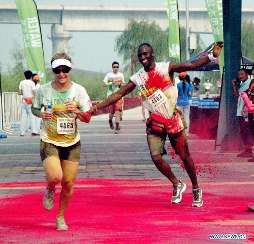 People participate in a color run race in Beijing, capital of China, Aug. 10, 2013. (Xinhua/Liu Wei)