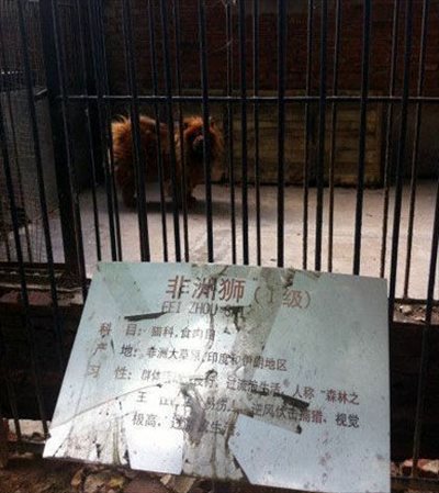 A park visitor surnamed Liu noticed something wasn’t right at People’s Park Zoo in the city of Luohe last week when her 6-year-old son pointed out that the African lion they had paid to see had begun barking.