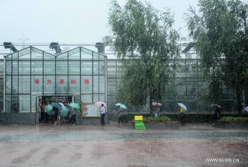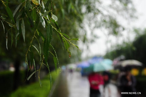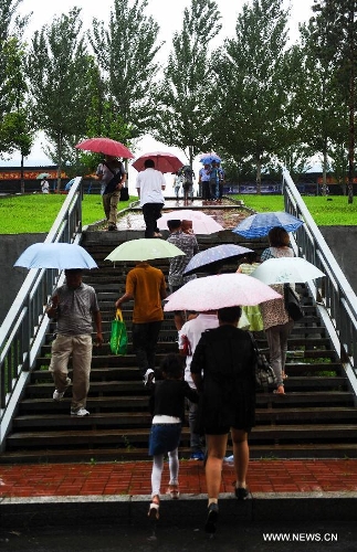 Residents walk in rain in Changchun, Northeast China's Jilin Province, August 16, 2013. Most areas of Jilin witnessed heavy rainfall on Friday.(Xinhua/Xu Chang)