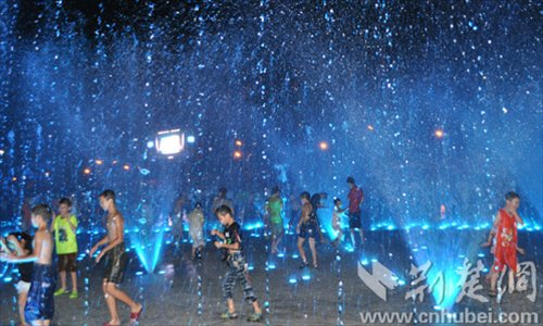 The installed musical fountain, located in the mountainous Enshi Tujia and Miao Autonomous Prefecture's newly-built cultural center, utilizes dozens of high-pressure water jets timed to music and lights.