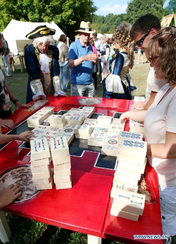 Visitors watch the Mahjong introduced from China to Germany some 250 years ago, during the Rococo festival at the Friedrichsfelde Palace, Berlin, Germany, Aug. 25, 2013. The Rococo Festival brings back the splendid royal lives and flavors during the reign of Friedrich II, King of Prussia dated back to 18th century. (Xinhua/Pan Xu)