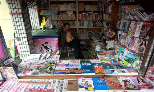 Another newsstand owner surnamed Ying runs a stand in the Shanghai International Studies University in Hongkou district. This kiosk is part of a different chain, Education Newsstands, and Ying told the Global Times that he is losing money selling magazines and newspapers. "The income doesn't cover the wages I have to pay for my two employees, electricity and water bills and rent."