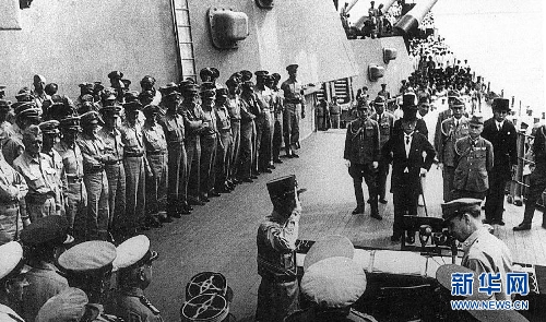 File photo shows the formal surrender ceremony held aboard the battleship USS Missouri in Tokyo Bay. On September 2, 1945, a formal surrender ceremony was held aboard the battleship USS Missouri in Tokyo Bay, Japan. The signing of the surrender document officially marked the end of World War II. The Japanese army in China formally surrendered to the Chinese government on September 3, 1945. The day was appointed the national commemoration day of victory over the Japanese invaders. (Source: xinhuanet.com/photo)