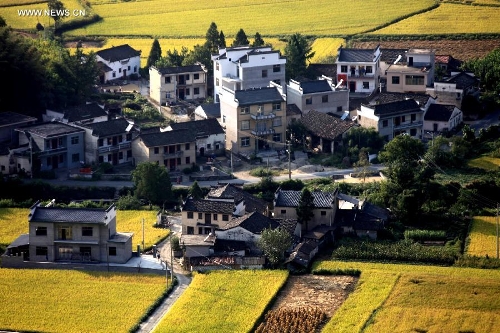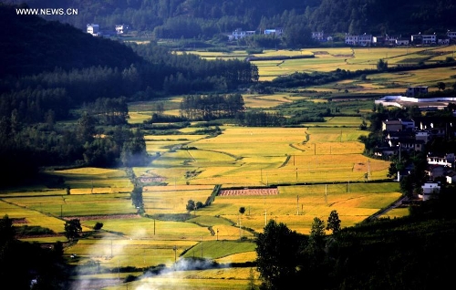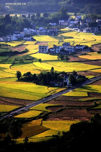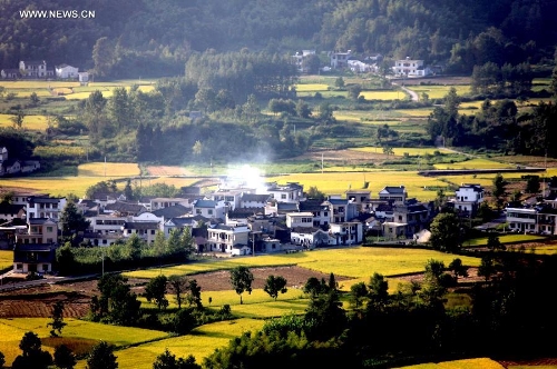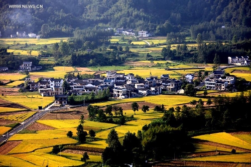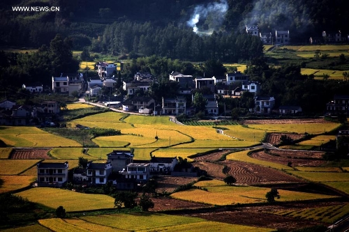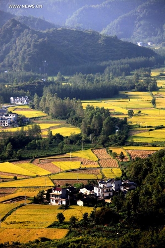 Photo taken on Sept. 9, 2013 shows a view of paddy rice fields at Kecun Village of Yixian County in Huangshan City, East China's Anhui Province. (Xinhua/Shi Guangde)