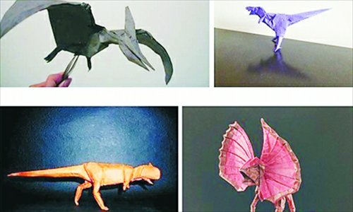 Examples of origami dinosaurs made by Web users Photo: Chongqing Economic Times