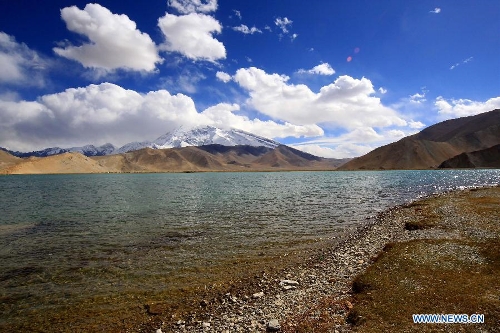 Photo taken on Sept. 15, 2013 shows the Karakol Lake at the foot of Mount Muztagata in the west of Xinjiang Uygur Autonomous Region, northwest China. The Karakol Lake covers an area of 10 square kilometers, with an altitude of 3,600 meters and an average depth of over 30 meters. (Xinhua/Cai Zengle)