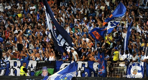 FC Porto's fans cheer for their team during the Portuguese league football match between Estoril and FC Porto at the Antonio Coimbra da Mota stadium in Estoril on September 22, 2013. The game ended in a draw 2-2. (Xinhua/Zhang Liyun)