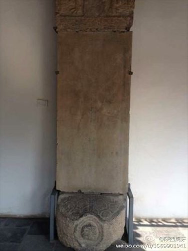 The Qing Dynasty (1644-1911) stele pedestal in Xianyang Museum, Shaanxi Province began making headway online after Weibo user "Shaanxi Huya" posted a picture on September 21, inquiring about the missing appendage.