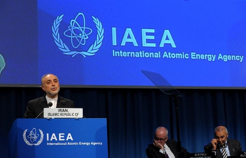 Ali Akbar Salehi, Iranian Vice-President and head of Atomic Energy Organization of Iran, speaks during the 57th General Conference of the International Atomic Energy Agency (IAEA) in Vienna, capital of Austria, on Sept. 16, 2013. (Xinhua/Qian Yi)
