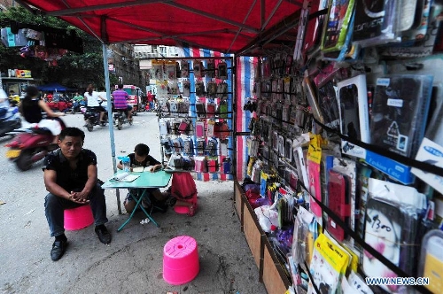 Six-year-old Zhang Dongxu writes homework at his father's stall in Wanxiu Village of Nanning City, capital of Southwest China's Guangxi Zhuang Autonomous Region, June 26, 2013. Urban villages, or "villages in cities", are usually inhabited by poor people and migrants. The tough living conditions there make it difficult for children of migrant workers' families to pursue education. Despite the short physical distance from city, their study environments fall far behind from those in urban areas. Their dream is to live and study just like children living in cities. (Xinhua/Zhang Ailin)