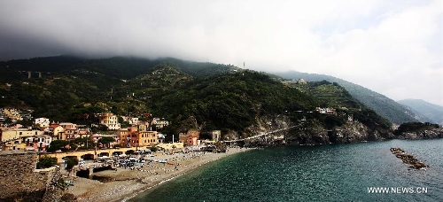 Photo taken on Sept. 28, 2013 shows a view of Monterosso in Cinque Terre of Italy. The Cinque Terre meaning five towns indicates Riomaggiore, Manarola, Corniglia, Vernazza and Monterosso located from south to north on Ligurian coast. The layout and disposition of the small towns and the shaping of the surrounding landscape, overcoming the disadvantages of a steep, uneven terrain, encapsulate the continuous history of human settlement in this region over the past millennium. In 1997 Porto Venere and the villages of Cinque Terre were designated by UNESCO as a World Heritage Site. (Xinhua/Du Juanjuan)