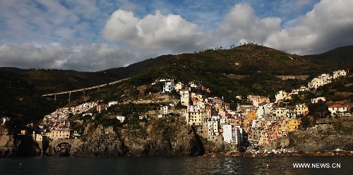 Photo taken on Sept. 26, 2013 shows a view of Riomaggiore of Cinque Terre of Italy. The Cinque Terre meaning five towns indicates Riomaggiore, Manarola, Corniglia, Vernazza and Monterosso located from south to north on Ligurian coast. The layout and disposition of the small towns and the shaping of the surrounding landscape, overcoming the disadvantages of a steep, uneven terrain, encapsulate the continuous history of human settlement in this region over the past millennium. In 1997 Porto Venere and the villages of Cinque Terre were designated by UNESCO as a World Heritage Site. (Xinhua/Du Juanjuan)