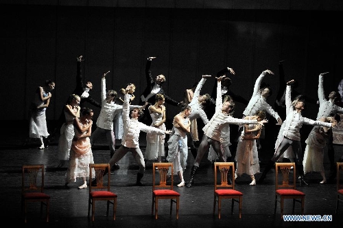 Dancers from Russia's Mariinsky Theatre perform ballet Anna Karenina at the Tianjin Grand Theatre in Tianjin, north China, Sept. 30, 2013. The dance is choreographed by Alexei Ratmansky. (Xinhua/Chang Pu)